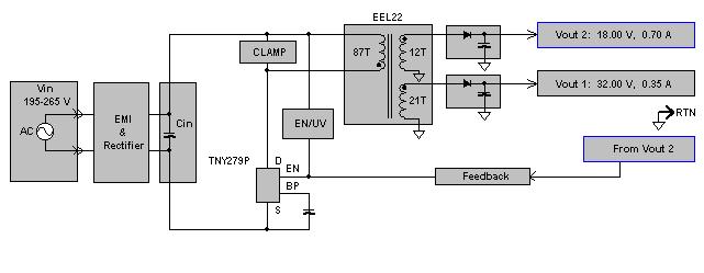 情景照明LED驅動(dòng)線(xiàn)路設計,主電路選用PI公司TinySwitch-III系列的一個(gè)器件TNY279P,電路結構相對簡(jiǎn)單,并有較高電源效率,在滿(mǎn)功率輸出時(shí),PI軟件估計電源效率為82%,電路采用反激式轉換器模式,隔離輸出,保證了使用操作的安全性,驅動(dòng)電路為白光LED負載提供穩定電流輸出并為彩燈驅動(dòng)提供一穩定電壓電源,電路總輸出功率為24W(白光10W+彩色3*4W)。 主電源采用PI電源芯片TinySwitch-III系列,電路結構及變壓器設計采用PI公司電源設計軟件,設計結果如下: