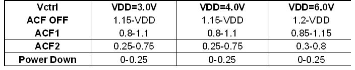 由于各模式對CTRL端電平要求基本不隨VDD的變化而變化,遂電阻網(wǎng)絡(luò )需隨VDD的不同而不同。上圖中各模式CTRL端具體電平可參看下表: