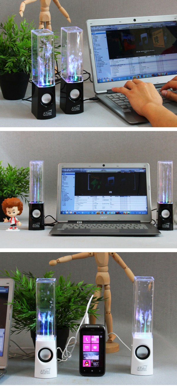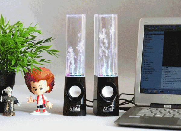七彩水舞音響外觀(guān)感覺(jué)很酷,水有多種色彩變換,視覺(jué)效果不錯(特別是夜晚)。屬于小型有源桌面音響,主要是配筆記本、平板電腦等用的。