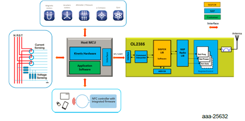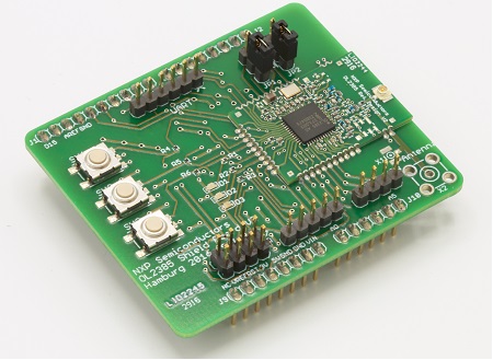 The OM2385/SF001 consists of a base board (the OL2385 shield board) with a permanently attached daughter board (the OL2385 reference design board). The combination—along with the attached FRDM-KL43Z board—serves as a development platform that provides wireless modem access to the SIGFOX network. Once properly registered, the board allows users to send and receive messages across the network.