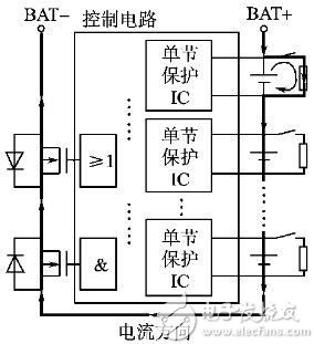 采用單節鋰電池保護芯片設計的具備均衡充電能力的鋰電池組保護板結構框圖如下圖1所示。