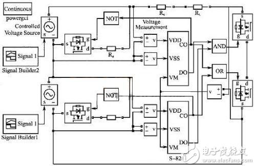 圖5 2節鋰電池串聯(lián)均充保護仿真模型