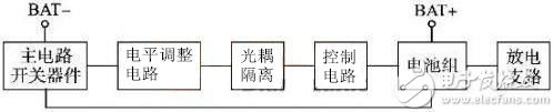 實(shí)際應用中,針對某品牌電動(dòng)自行車(chē)生產(chǎn)廠(chǎng)的需求,設計實(shí)現了2組并聯(lián)、10節串聯(lián)的36V8A.h錳酸鋰動(dòng)力電池組保護板,其中單節鋰電池保護芯片采用日本精工公司的S28241,保護板主要由主電路、控制電路、分流放電支路以及濾波、光耦隔離和電平調理電路等部分組成,其基本結構如圖7所示。放電支路電流選擇在800mA左右,采用510Ω電阻串并聯(lián)構成電阻網(wǎng)絡(luò )。