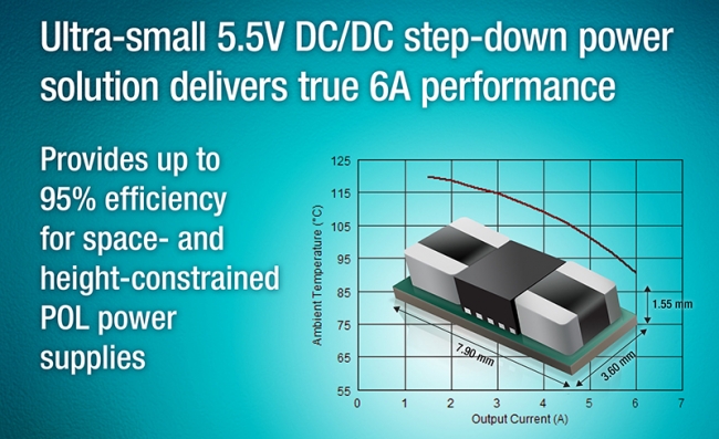高度集成的同步電源模塊為空間和高度受限的應用提供高達95%的效率