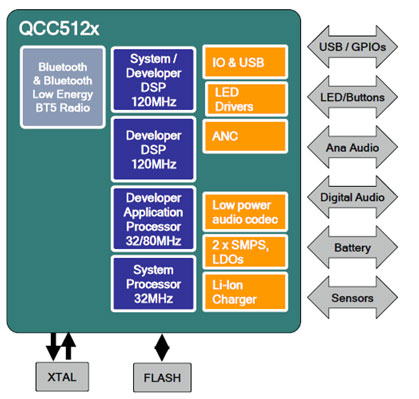 圖示1-Qualcomm高性能、低功耗音頻平臺QCC5100系列的系統架構圖