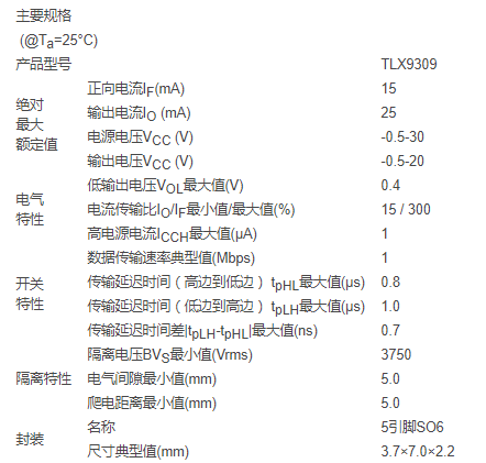 TLX9309采用符合RoHS標準的3.7mm x 7.0mm x 2.2mm 5引腳SO6封裝,工作溫度范圍為-40°C至+125°C。該器件已通過(guò)AEC-Q101認證,可用于汽車(chē)應用。