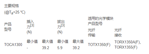 [2] 當與TOTX1350(F)光纖傳輸模塊以及TORX1350A(F)或TORX1355(F)光纖接收模塊相結合時(shí)。