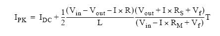 其中,Rs為感應電阻阻抗加電感繞線(xiàn)電阻的阻。Vf是肖特基二極管的正向壓降。R是Rs加MOSFET導通電阻,R=Rs+Rm。