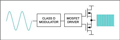 智能手機、MP3播放器和便攜式擴展塢等手持移動(dòng)音頻設備的普及將功耗問(wèn)題推上了風(fēng)口浪尖,F在,必須通過(guò)降低功耗來(lái)延長(cháng)電池壽命。D類(lèi)放大器利用脈寬調制(PWM)產(chǎn)生滿(mǎn)擺幅數字輸出信號,利用占空比的變化表示模擬輸入信號(圖4)。由于輸出晶體管在工作期間要么完全導通,要么完全關(guān)閉,所以這些放大器的效率較高(往往高達90%或更高)。該方法完全避免了使用晶體管的線(xiàn)性區域,而晶體管線(xiàn)形區正是造成其它類(lèi)型放大器效率較低的原因,F代的D類(lèi)放大器的保真度也可媲美AB類(lèi)放大器。由于D類(lèi)開(kāi)關(guān)放大器具有較高效率,例如MAX98304和MAX98400A,所以被廣泛用于便攜式應用。更多示例請參考Maxim的D類(lèi)放大器。