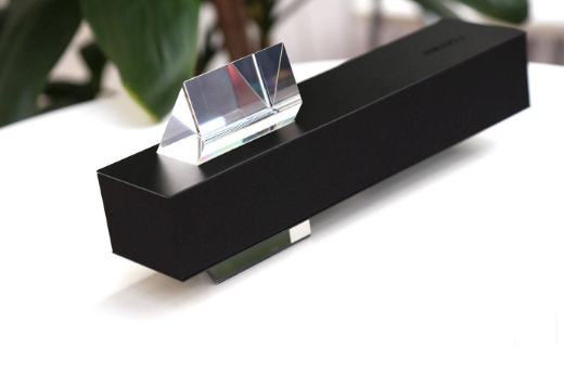 現在市面上已經(jīng)有不少通過(guò)磁力實(shí)現的懸浮音箱,不過(guò)Gravity的“懸浮”還是有所不同的。結構上,Gravity由長(cháng)條狀的腔體和透明棱鏡(PMMA有機玻璃材質(zhì))組成,正是這塊棱鏡的加入為它增加了“懸浮”的視覺(jué)效果。
