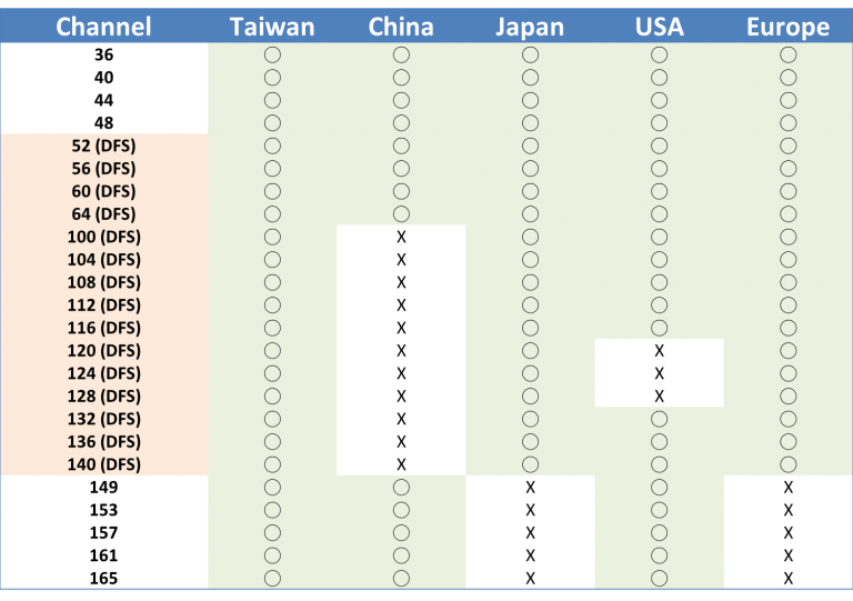 DFS這項認證會(huì )要求使用5GHz頻段的Wi-Fi產(chǎn)品,當偵測到同頻段雷達信號時(shí),要自動(dòng)切換到其他頻道;每個(gè)國家開(kāi)放的5GHz頻道不一樣,有些國家有著(zhù)較強的抗干擾技術(shù),會(huì )開(kāi)放比較多的頻段,有些國家則開(kāi)放較少、甚至沒(méi)有。