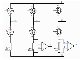 對于320V供電空調壓縮機,電機內阻0.2Ω,如果采樣電阻合適,則對回路沒(méi)有什么影響。如果采樣電阻的阻值過(guò)大,會(huì )引起電壓的損耗,使能量效率變低,較大的阻值會(huì )使負載電壓發(fā)生偏移,產(chǎn)生電磁干擾,產(chǎn)生系統對噪聲敏感的問(wèn)題。當確定好阻值后還需要考慮電阻的穩定性能和阻值誤差。