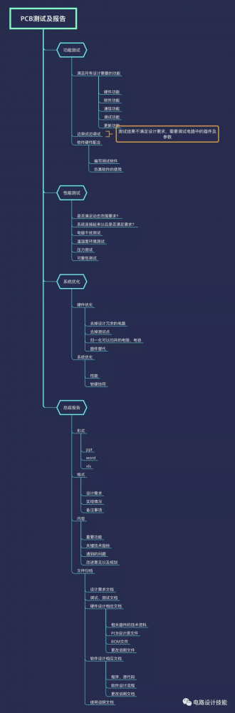 下面的一張圖是PCB的測試及項目報告。雖然整個(gè)板子能夠工作正常,但不意味著(zhù)你的板子滿(mǎn)足當初的設計要求,也就是從功能上要完全實(shí)現,從性能方面要完全滿(mǎn)足,這里的測試僅僅還是在實(shí)驗室里面的樣機系統,如果作為產(chǎn)品會(huì )有更多的測試條目,測試過(guò)程也會(huì )更加嚴苛,因為我們多數都是研發(fā)工程師,主要面對的都是實(shí)驗室的樣機,因此在這里僅把這一個(gè)階段的工作整理了一下。最后的總結報告非常重要,不僅是為了給你的老板報告、給你的同事做分享,更重要的是讓自己有一個(gè)更認真、完整的回顧。