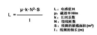 電感值的計算公式如下所示。卷數越多,磁場(chǎng)越強。同時(shí),橫截面積變大,或改變磁芯都能夠使磁場(chǎng)增強。