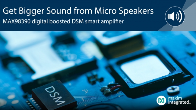 2019年6月11日——今日,Maxim Integrated Products, Inc (NASDAQ: MXIM)宣布推出MAX98390智能放大器,集成動(dòng)態(tài)揚聲器管理(DSM)算法,大幅提升音量并獲取更清晰、更豐富的音質(zhì),具有當前市場(chǎng)最低的靜態(tài)功耗,進(jìn)一步縮小尺寸,滿(mǎn)足用戶(hù)對時(shí)尚產(chǎn)品的嚴苛要求。升壓型數字D類(lèi)DSM智能放大器能夠安全穩定地為微型揚聲器提供更高等級的功率 (高達5.1W,遠超1-3W典型值),充分發(fā)揮系統的音頻性能。