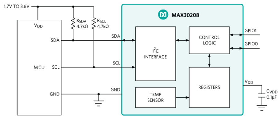 MAX30208數字溫度傳感器的精度為±0.1°C。
