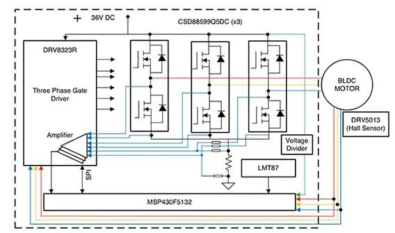 圖 2:基于 TI MSP 430 微控制器的 BLDC 電機控制示意圖。(圖片來(lái)源:Texas Instruments)