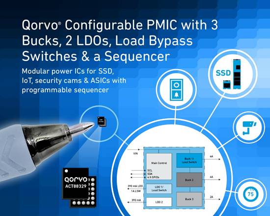 移動(dòng)應用、基礎設施與航空航天、國防應用中 RF 解決方案的領(lǐng)先供應商 Qorvo®, Inc.(納斯達克代碼:QRVO)今日宣布,推出新一代多重時(shí)間可編程電源管理 IC (PMIC)---ACT88327/8/9/1,該電源管理 IC 針對高性能和緊湊設計進(jìn)行了優(yōu)化。