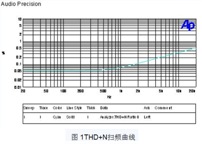 對于音響和高端手機用戶(hù)來(lái)說(shuō),THD+N體現了音頻功放的失真度,是非常重要的指標。為了完整地考察音頻功放在整個(gè)音域內的表現,圖 1所示的掃頻曲線(xiàn)也是非常重要的,根據音頻放大器和揚聲器的特性在外圍電路做適當的調整,可以得到令人滿(mǎn)意的音色。