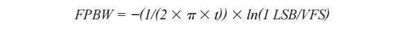 這樣,設計人員便能估算用于轉換器的最大模擬輸入頻率或采樣帶寬,并依舊建立至1 LSB誤差以?xún)。超出這個(gè)范圍,則ADC無(wú)法精確表示信號。這可以簡(jiǎn)單定義為: