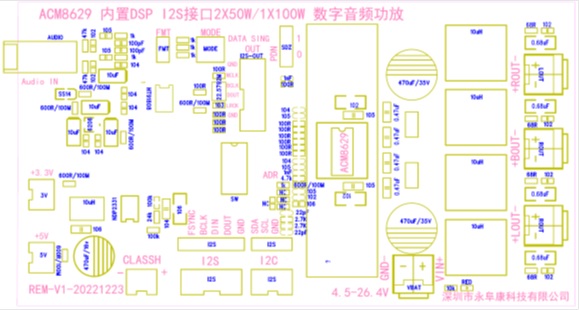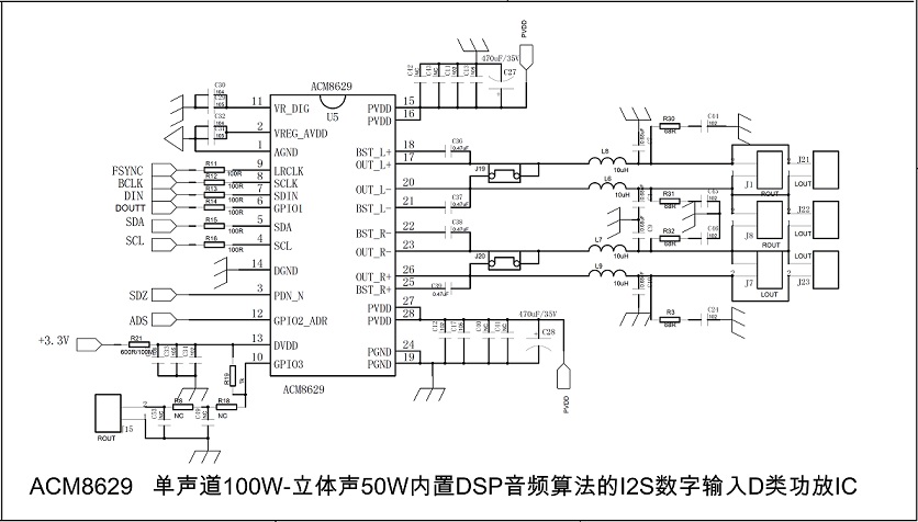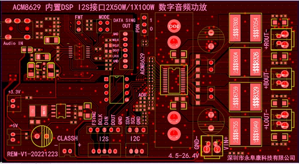 | ACM8629 單聲道100W/立體聲50W內置DSP音頻算法的I2S數字輸入D類(lèi)功放IC解決方案 |