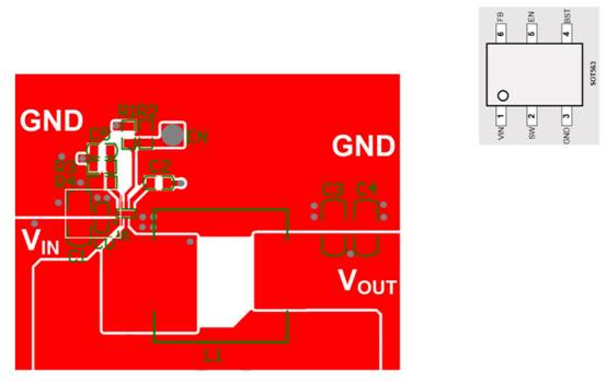 同步BUCK的方式,續流路徑要經(jīng)過(guò)芯片的GND管腳,輸入電容要接在芯片的GND和Vin之間,路徑竟可能的短粗。