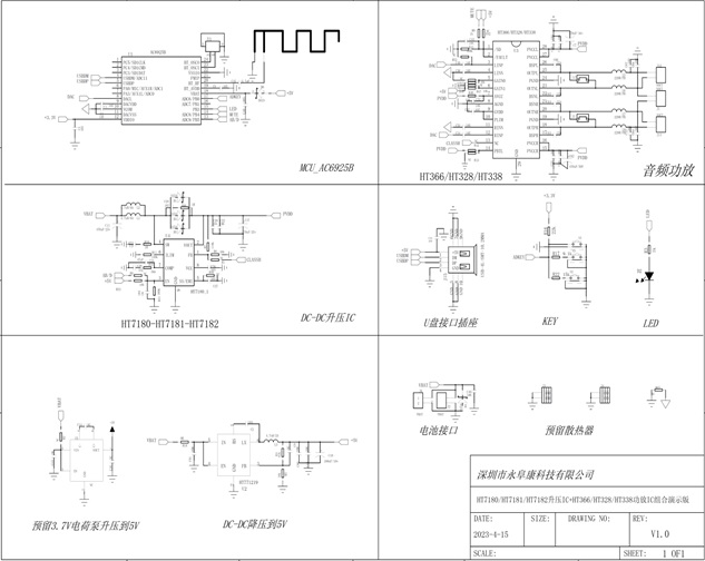 1.HT7180/HT7181/HT7182升壓IC+HT366/HT328/HT338功放IC組合演示板原理圖