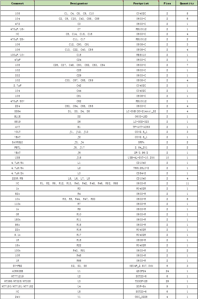 5.HT7180/HT7181/HT7182升壓IC+HT366/HT328/HT338功放IC組合演示板物料清單