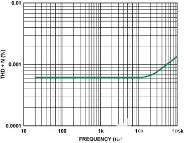 圖2顯示了音頻范圍內的總諧波失真和噪聲。誤差隨頻率增加,但在0 kHz時(shí)總誤差仍小于0007.20%。圖3顯示了與IC的連接。