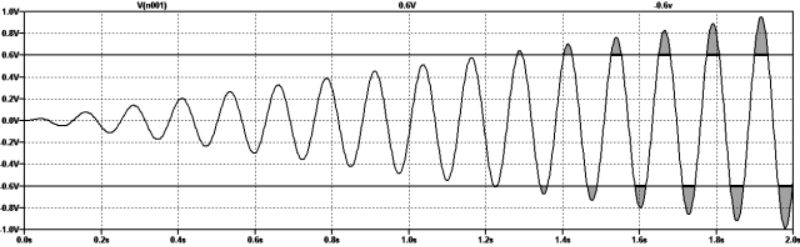 · 聲音再現高度失真,因為上、下峰值的音頻信號被剪切。
