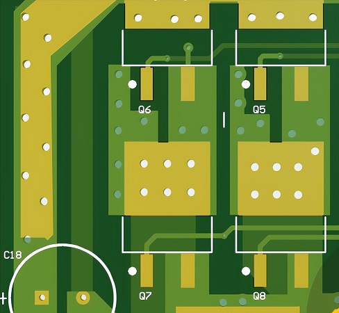 (4)注意大電流產(chǎn)生的熱量,熱量的累積會(huì )產(chǎn)生器件損壞,產(chǎn)品損壞,大電流的功率路徑更是要小心,一般會(huì )大面積鋪銅(銅皮是很好的熱導體),多打過(guò)孔(要盡量連接銅皮或者散熱焊盤(pán),越大的孔散熱越好,但是不要使用機械孔),把外部阻抗焊層挖開(kāi),讓銅皮直接裸露,在PCB設計散熱區域使用散熱片等方式,來(lái)加快散熱。
