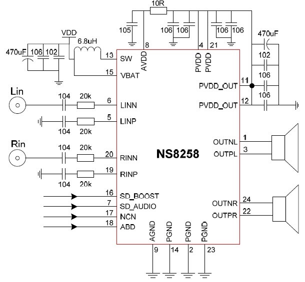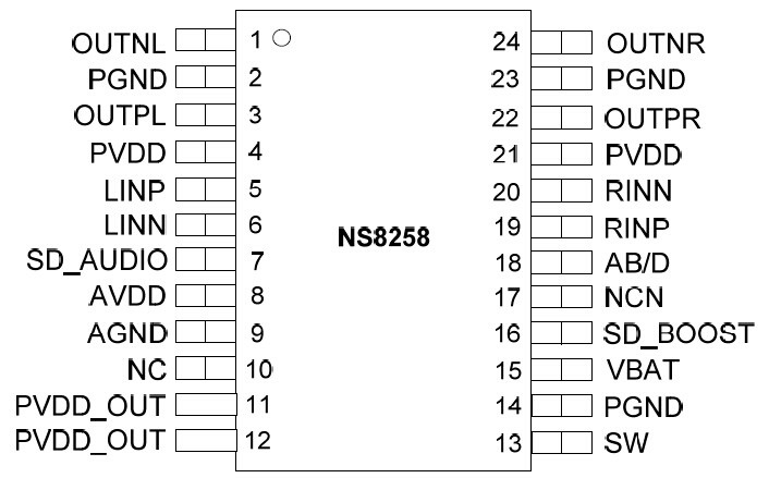 2X8.5W/2.7V-5.5V(內置自適應升壓模塊)/4Ω |